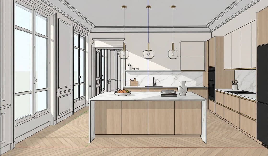 Non. Vous contrôlez chaque détail du rendu : matériaux, finitions, expositions. Le rendu reflète exactement les choix techniques validés dans votre programme — pas une interprétation.